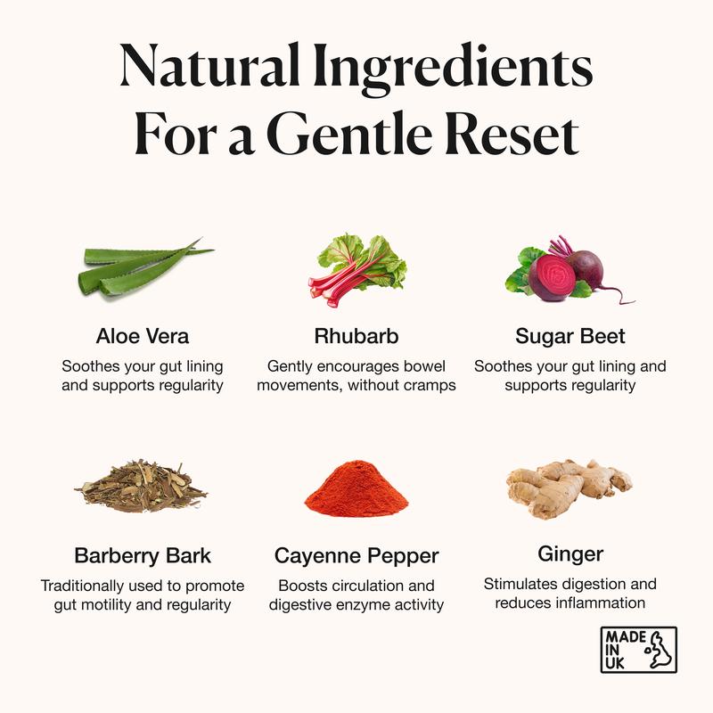 Product Ingredients : Dandelion Root / Licorice Root / Fennel Seed / Berberis Bark / Clove Bud Powder / Ginger Root / Beetroot Fiber / Burdock Root Powder / Chili Powder / Rhubarb Powder